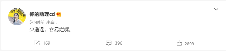 她的助理则直接得多,在网上发文:少造谣,容易烂嘴。