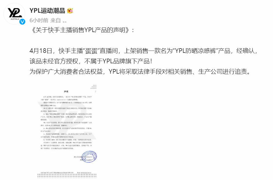 这一天晚上,“YPL”品牌方再次发布了声明,声称此事涉及商标授权争议,不过目前已经妥善解决。