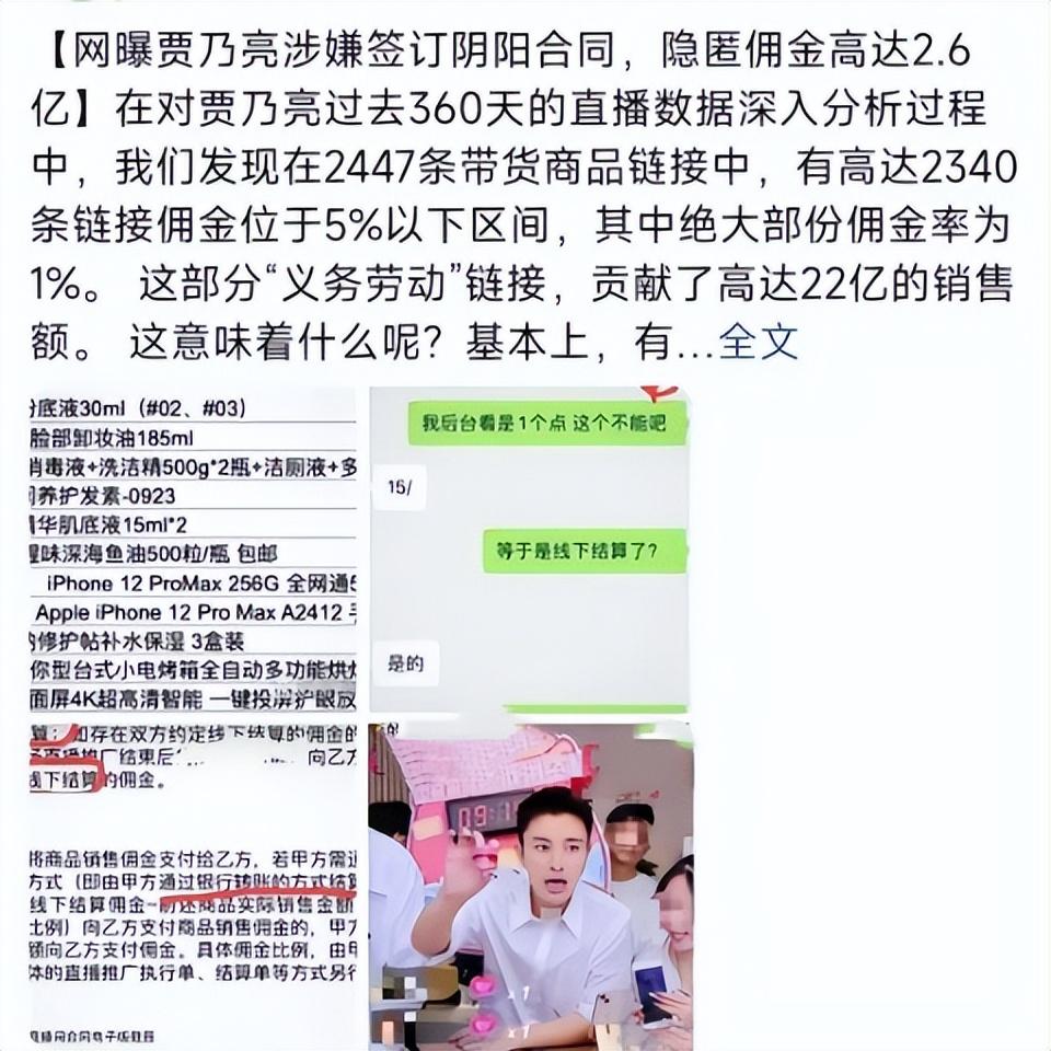 近日,有一位网友爆料称贾乃亮涉嫌在直播中签订“阴阳合同”进行偷税漏税,隐匿佣金高达2.6亿元。