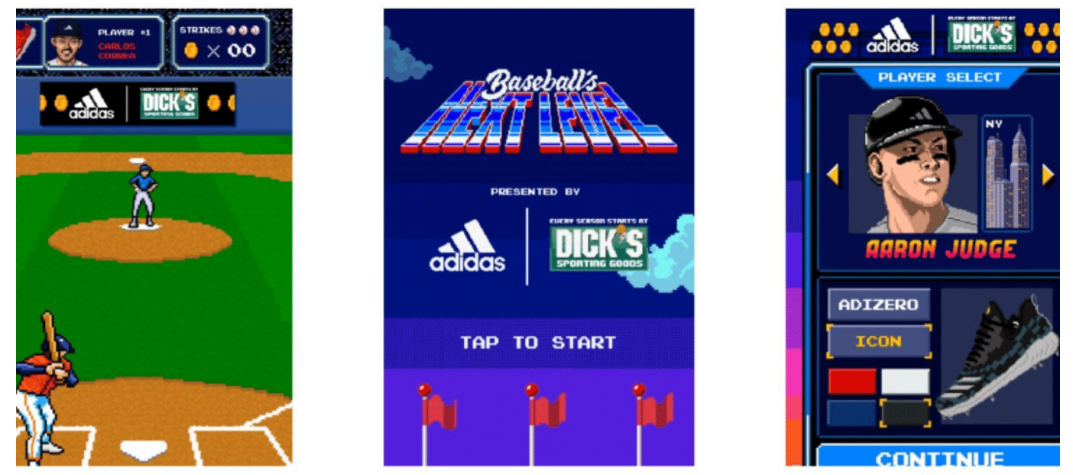 球迷可以在线或通过Snapchat应用程序玩"棒球的下一级"。8位手游的特色是MLB运动员穿着自己的阿迪达斯8位系列限量版防滑鞋。
