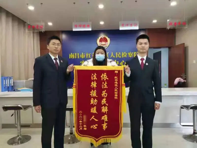 “感谢红谷滩区检察院,考虑到我家经济情况,及时伸出了援助之手!”12月13日,受害人岑某某的妻子走进南昌市红谷滩区检察院,送上一面写有“依法为民办难事,法律援助暖人心” 的锦旗,由衷感谢检察官为案件所作出的努力。