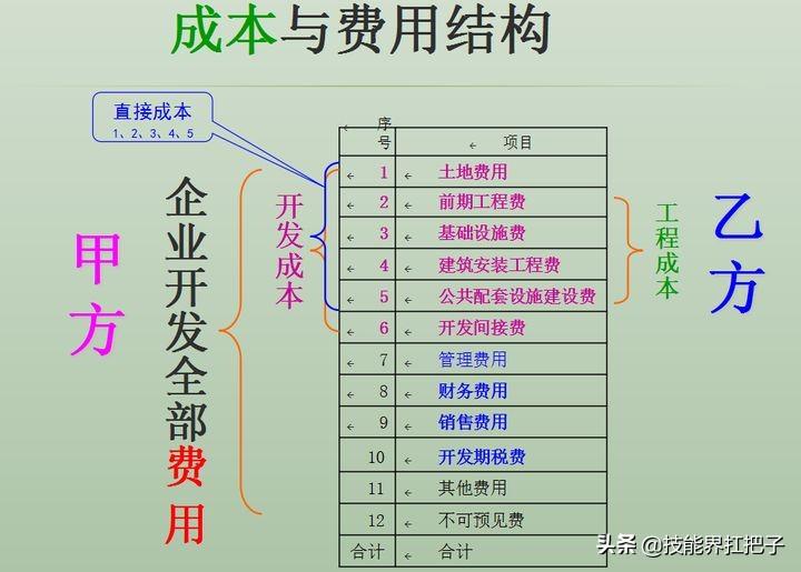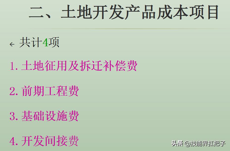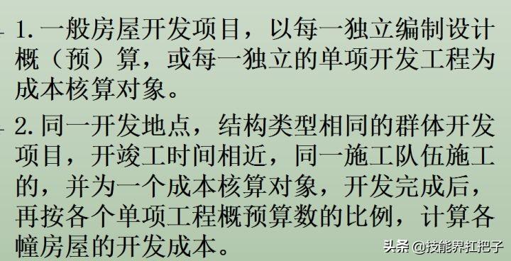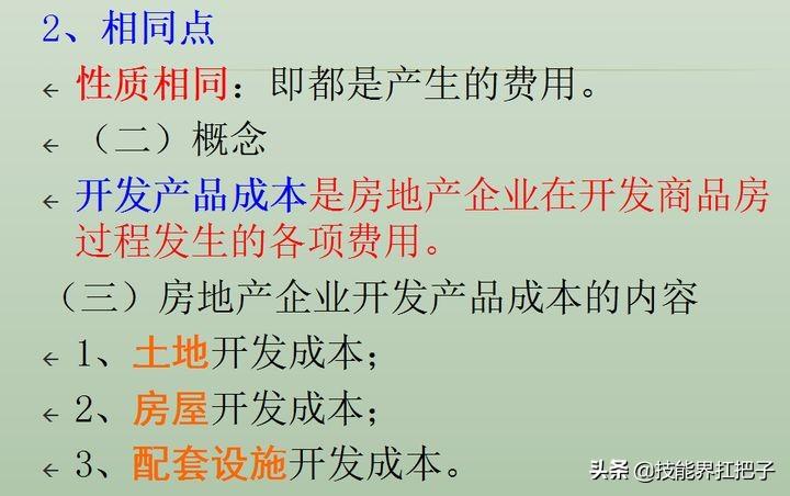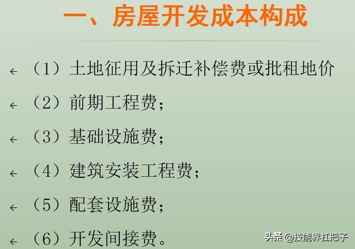 土地开发成本、配套设施成本、房屋开发成本、开发成本