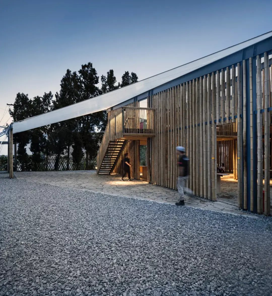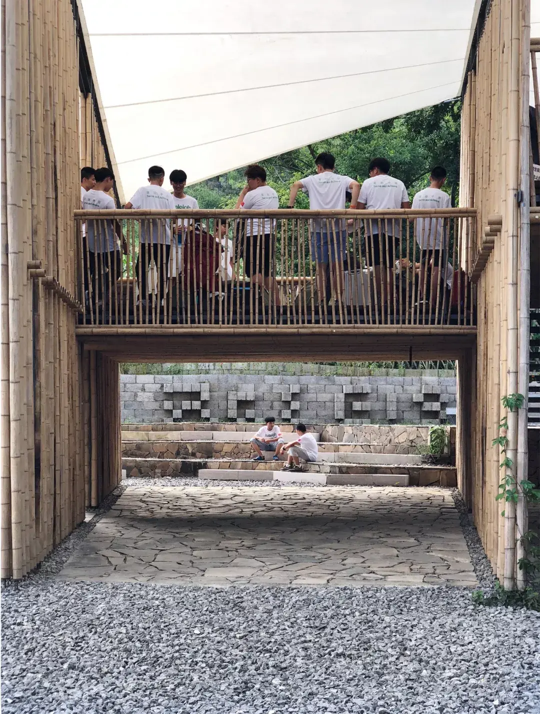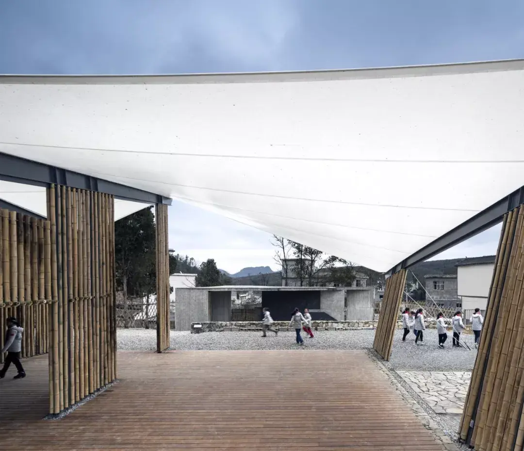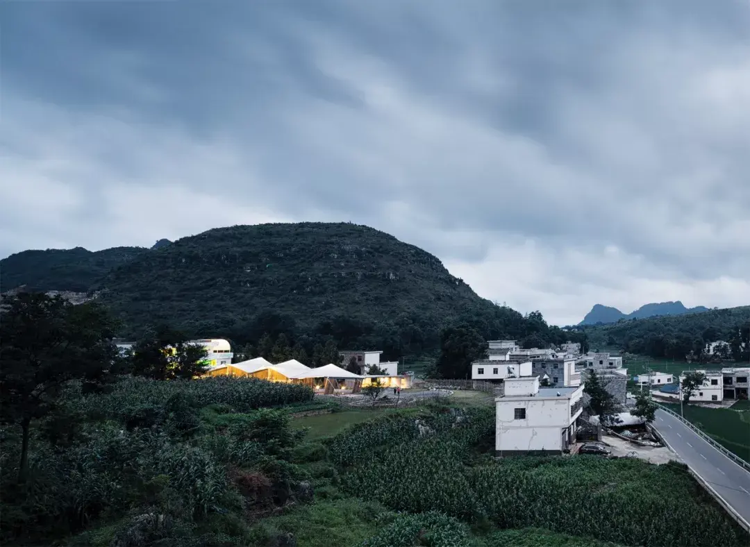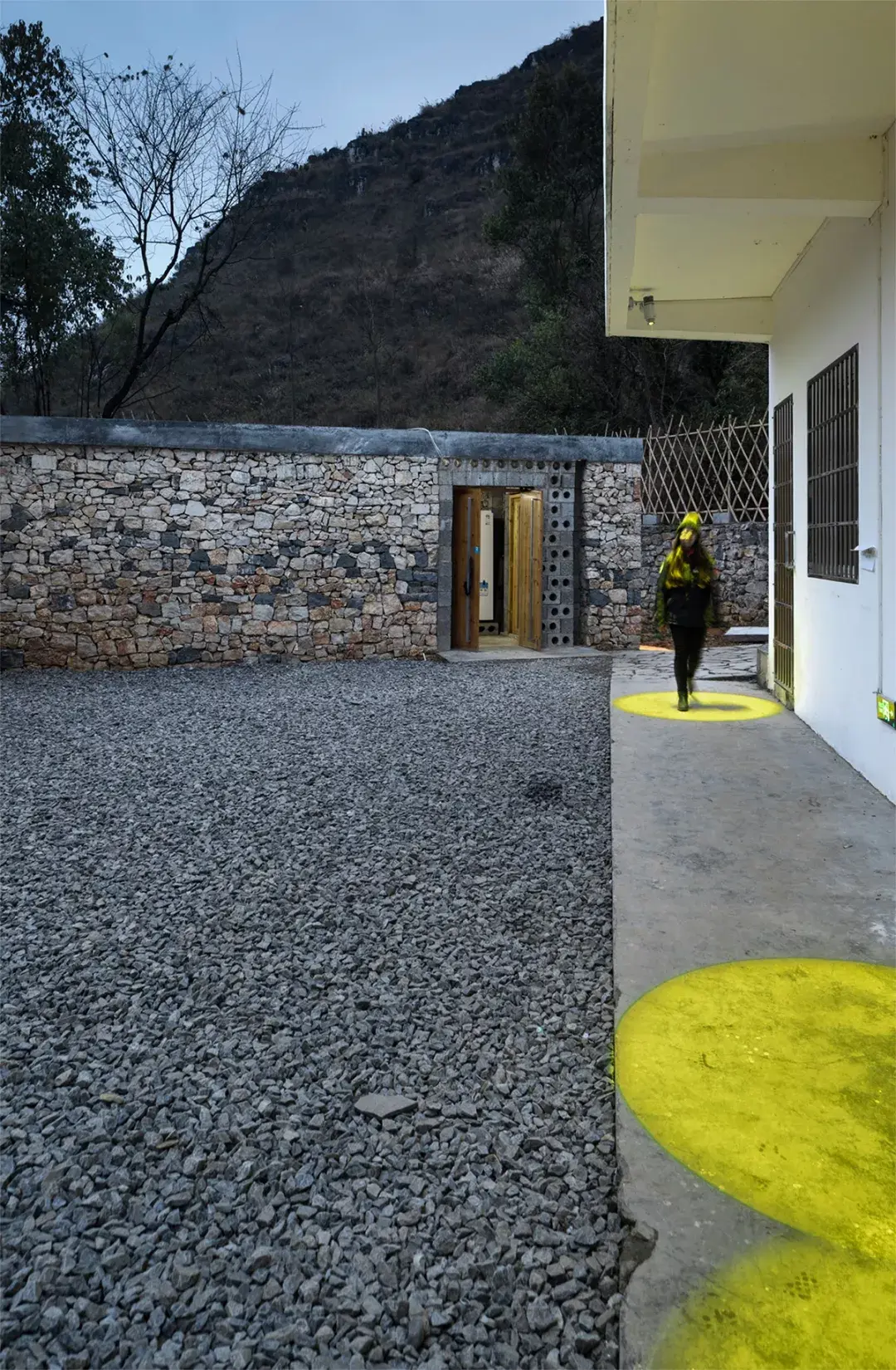 由于用地紧张,设计采用集约布局,改造原教学楼并以其作为场地锚固点,运用工业化轻量体系与乡土材料工艺相结合的方式,加建多功能通用空间、活动场地与服务体,并在营区入口与村路交接处建造长期向社区孩子开放的乡村图书馆。