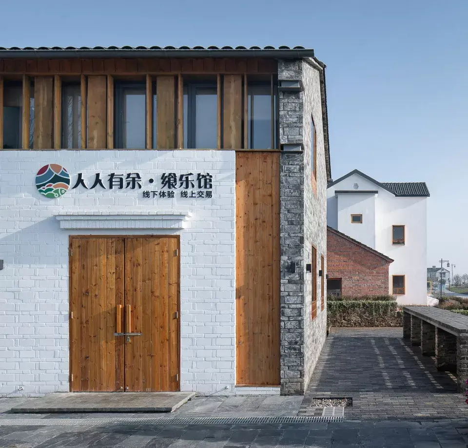 徐家大院是特色田园乡村中一组产业办公综合服务建筑。位置在乡村边缘,是密集的乡村与空旷田园之间的过渡。布局延续村庄肌理特征,顺应道路与周围房屋布置。