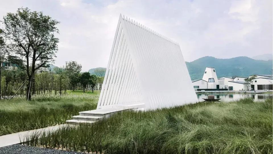这或许是在当下不断呼吁“乡土材料”、“传统符号”、“东方性”的大背景下,存在于江南山水环境中建筑风格的另一种可能性。