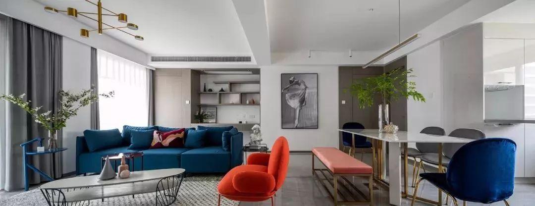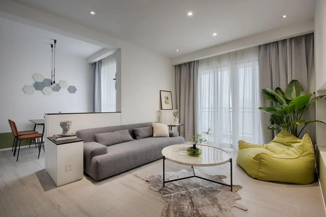 沙发不一定要对着电视墙放,而是取一面合适的靠墙区域,这个适合不爱看电视的家庭。