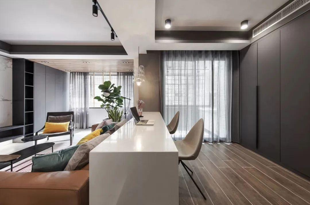 这种设计方式需要注意沙发的尺寸,不能太大也不能太小,太大会影响动线,太小则会显得空间空旷,所以在选择沙发时一定要根据户型大小实地测量。