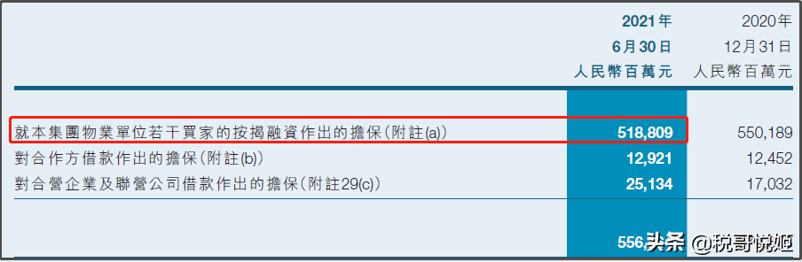 恒大截止2021年上半年,为预售房及已交房未办理房产证的购房者提供还款担保额5188.09亿,即是这些购房者断供、停止还房贷,恒大将需要履行担保义务,代为偿还房贷!