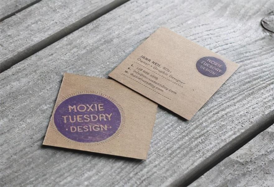 一个简单的形状变化可以让你的名片从许多中规中矩的名片中脱颖而出。这个正方形的商业名片就是一个很好的例子。