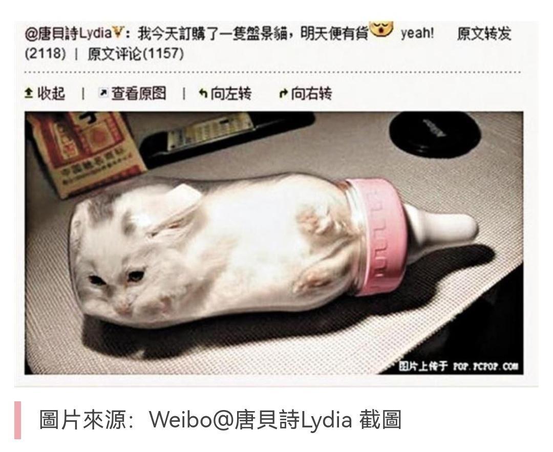 2010年,唐贝诗在微博自曝订购了一只盆景猫,并且喜滋滋发图如下。