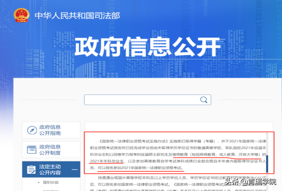 近日司法部发布“2021年国家统一法律职业资格考试公告”