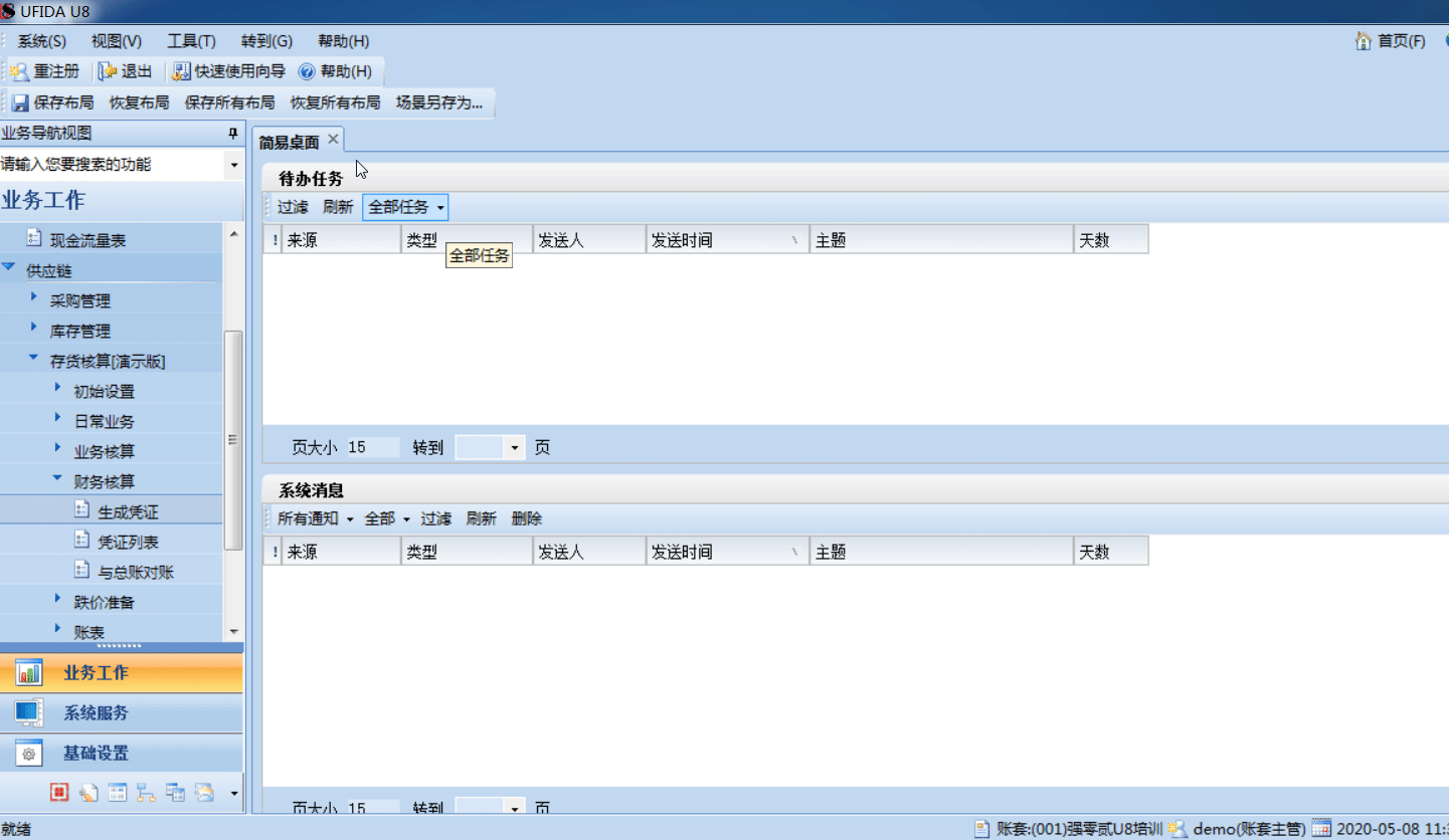 操作路径:【业务工作】-【供应链】-【存货核算】-【财务核算】-【生成凭证】