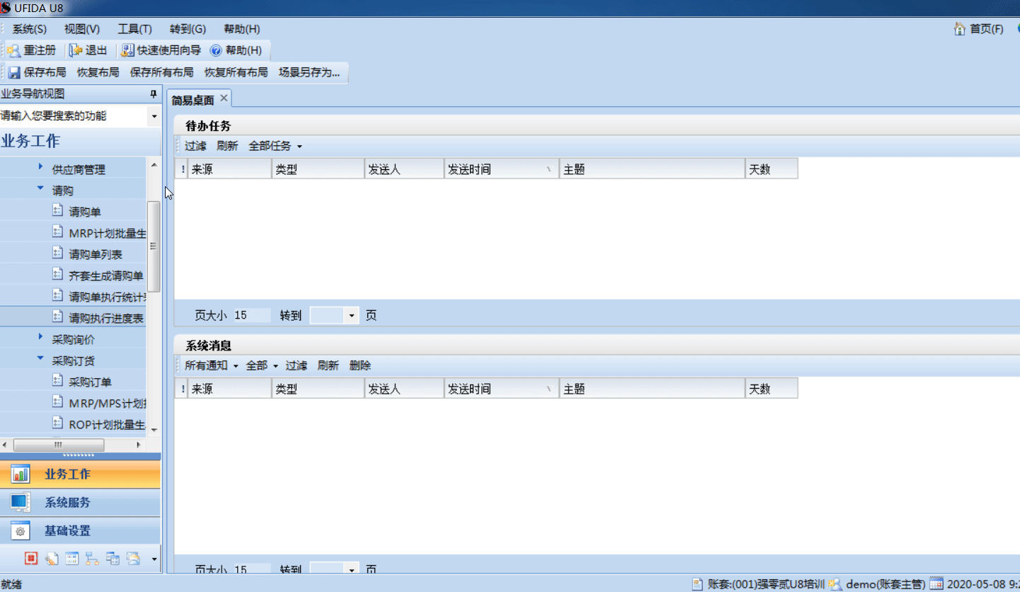 操作路径:【业务工作】-【供应链】-【采购管理】-【请购】-【请购单列表】