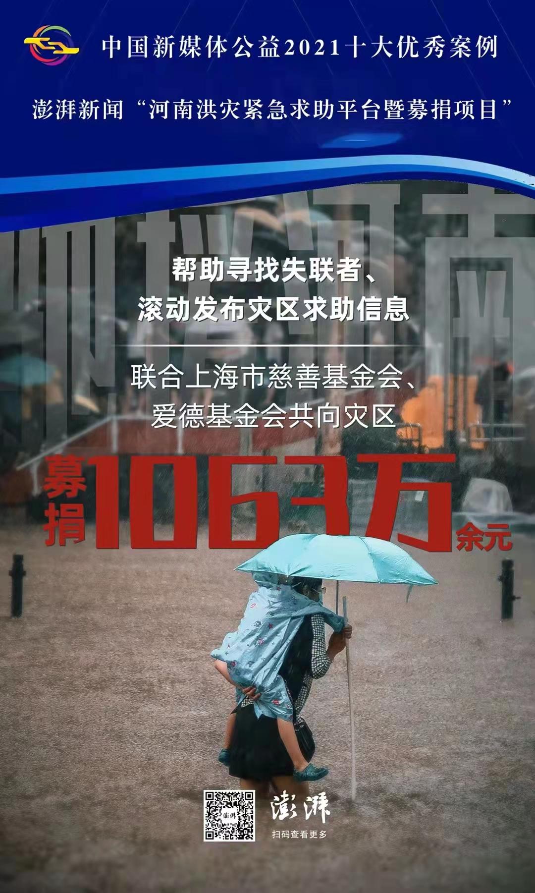1 月21日,由中国记协新媒体专委会评选的“中国新媒体公益 2021 十大优秀案例”新鲜出炉,爱德基金会深度参与的澎湃新闻“河南洪灾紧急求助平台暨募捐项目”、哔哩哔哩公益“乡村教育公益项目”双双入选。
