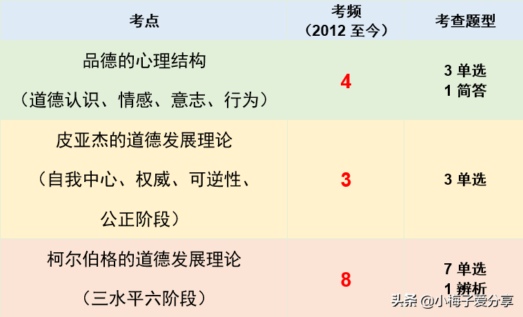 品德的结构与发展的阶段理论考频