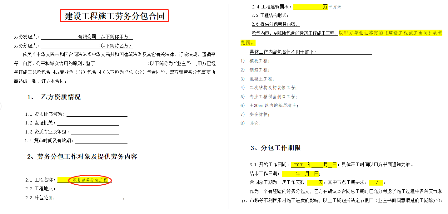 包含内容超级广泛,责任明确,所有担心的问题在这份建设工程施工劳务分包合同中都有所体现,参考价值极高!
