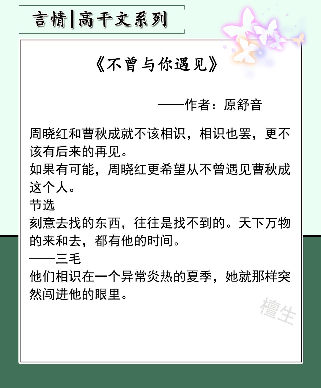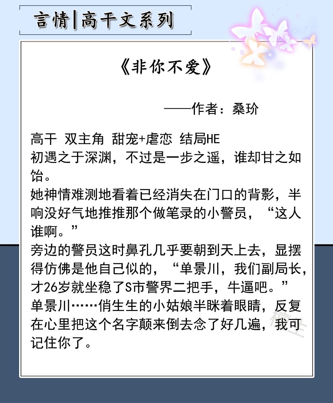 作品类型:都市情缘、高干文、女追男,已完结作品。