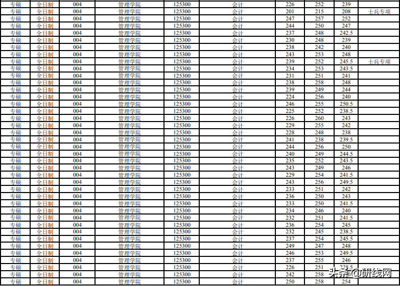上海大学管理学院2021年会计专硕复试分数线为:216/92/46(研线网公众号整理)