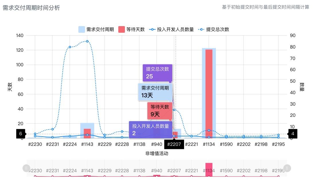 我说,当然有了,比如现在这个浪费的天数,消除一半,就可以缩短交付周期时间,提升迭代的产出了。