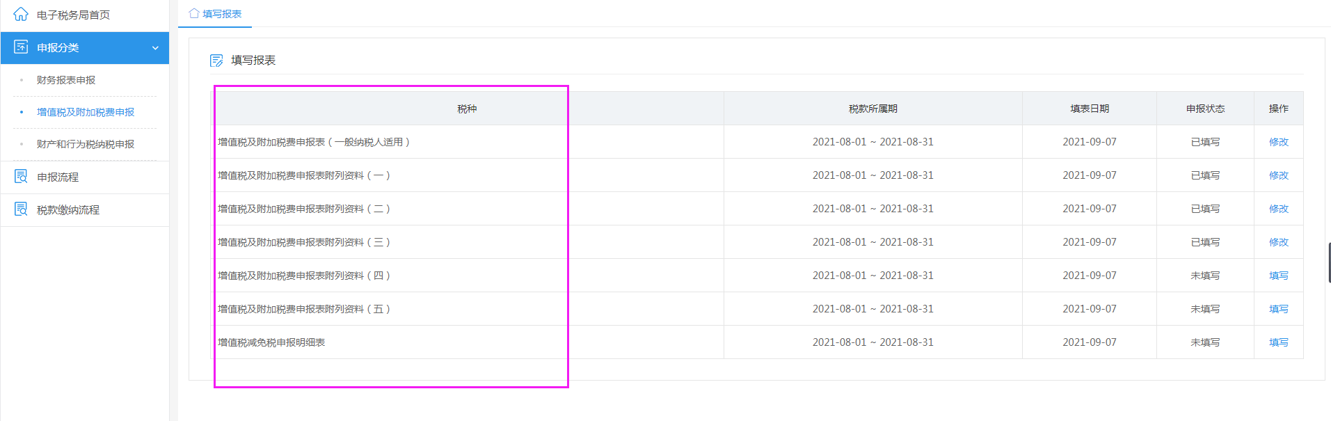 二、填写对应税务申报表