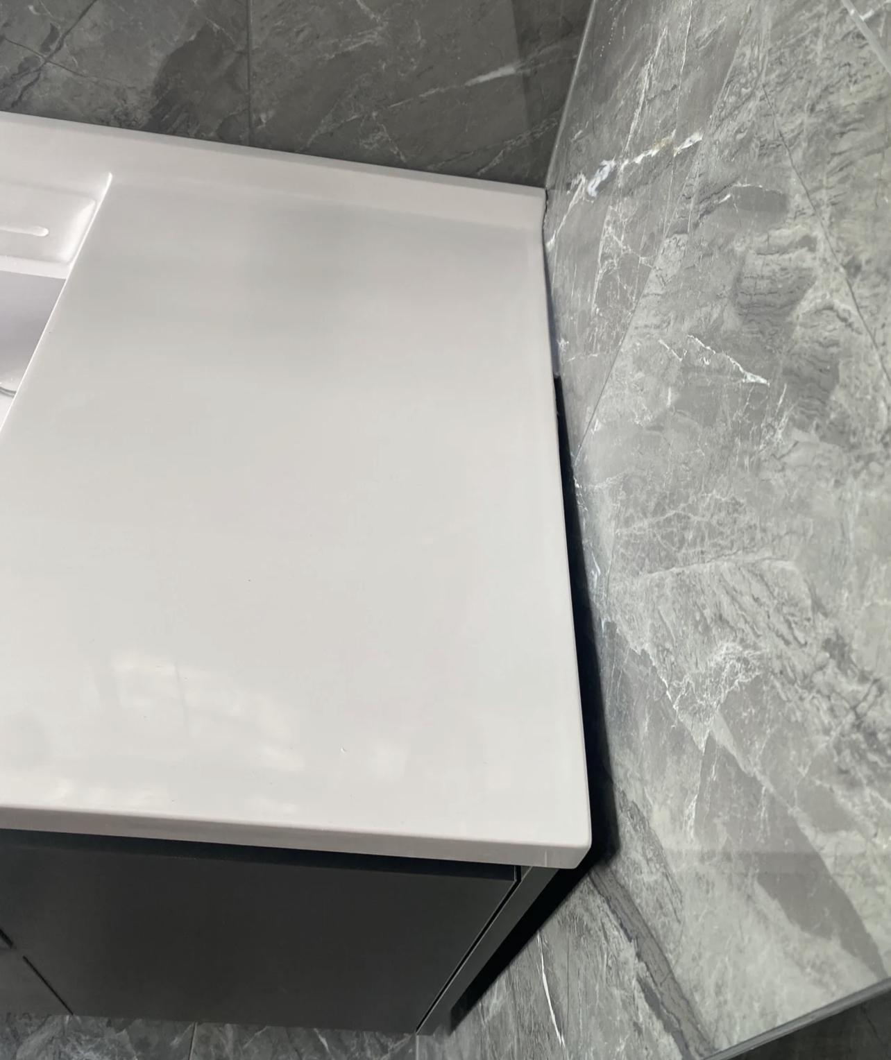 说实话,造成上图这种翻车实属不应该,完全是遇到了不靠谱的瓦工,墙面没有横平竖直,贴砖的时候,你也不在场,结果,浴室柜买回家才发现靠不到墙上。
