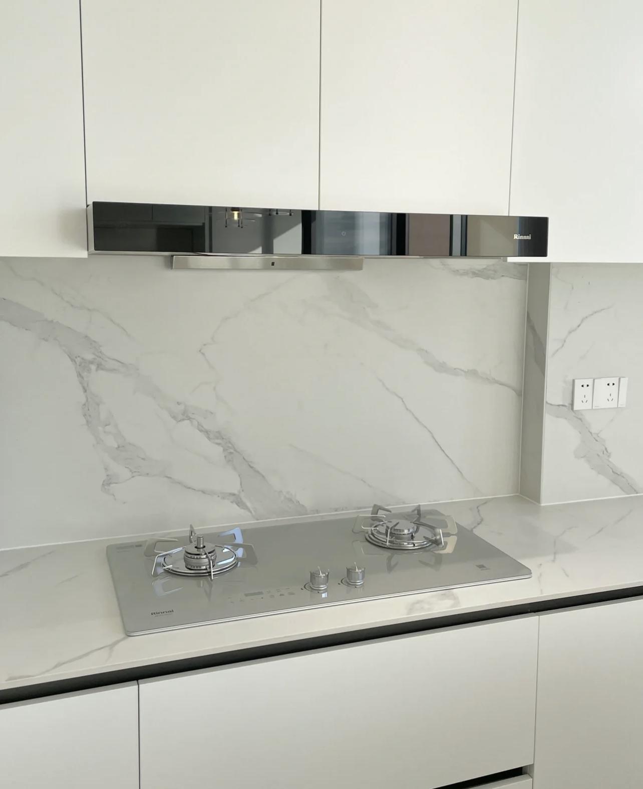 不过需要注意的是,要想效果完美,瓷砖宽度需大于台面到吊柜底部的宽度。同时,铺贴高度,需要与橱柜高度吻合。