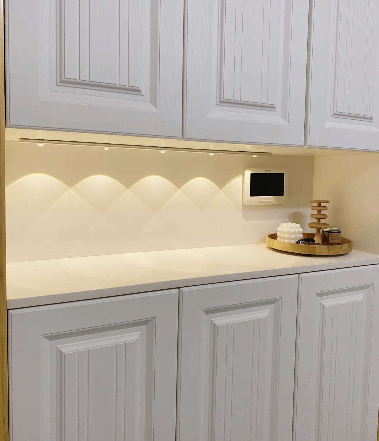 如果觉得玄关处光线不够,可以在玄关处安装这样一个小山丘灯,提升柜子颜值的同时,氛围感也是满满的。