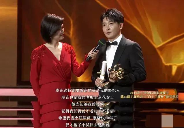 终于到了2019年,郭京飞凭借《都挺好》获得“上海电视节白玉兰奖最佳男配角奖”,在颁奖典礼上,郭京飞特别感谢经纪人及老板王京花,正是花姐的悉心教导才让他如此有出息。