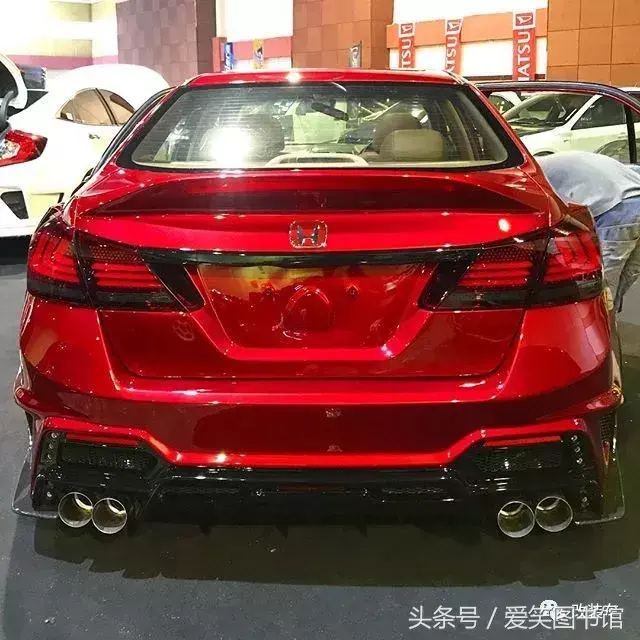 尾灯并非采用9代雅阁原厂尾灯,而是改用了更具科技感的LED尾灯。相信细心的朋友早已发现后包围底部的造型有点眼熟,其实后包围车主也加入了FK8前脸的元素,而尾唇与双边四出排气管的加入也给予了它更强的视觉冲击力。