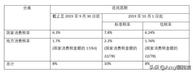 近三年重大税制变化2013 年 10 月,安倍首相宣布于 2014 年 4 月 1 日起,消费税税率由 1997 年开始实行的 5%增至 8%,并将于 2015 年 10 月 1 日继续上调至 10%。但由于日本国内对消费税增税的抵触情绪以及日本政府的经济压力,日本政府与 2014 年 11 月 18 日宣布推迟消费税增税 18 个月。2016 年 6 月1 日,日本政府再次宣布,消费税税率增至 10%的计划将继续推迟至 2019年 10 月。目前,日本消费税税率依然维持在 8%。消费税低税率(8%)虽与2019年9月30日之前的税率相同,但国民消费税税率(6.3%至6.24%)和地方消费税税率(1.7%至1.76%)的细分已经更新。