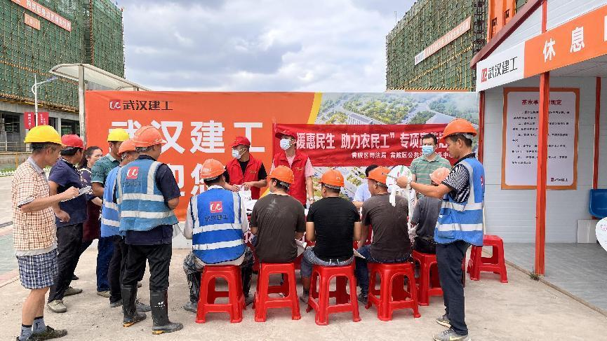 为深入推进盘龙城经济开发区党建引领社区治理能力提升实践活动,2022年6月22日,黄陂区司法局公共法律服务管理科、黄陂区法律援助中心、盘龙城司法所在盘龙城经济技术开发区下集村武汉市第一医院盘龙城院区(一期)工地开展了“送法进工地 ‘安薪工程’暖人心”法律援助志愿服务宣传活动,帮助企业规范劳动用工管理,让农民工能够安“薪”工作,提高建设工地施工效率,助力企业和农民工互利共赢。