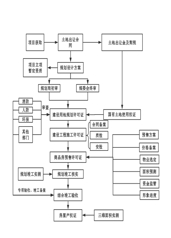 建筑工程施工许可证、房屋拆迁许可证、项目暂定资质、预售证、排水许可、竣工验收等