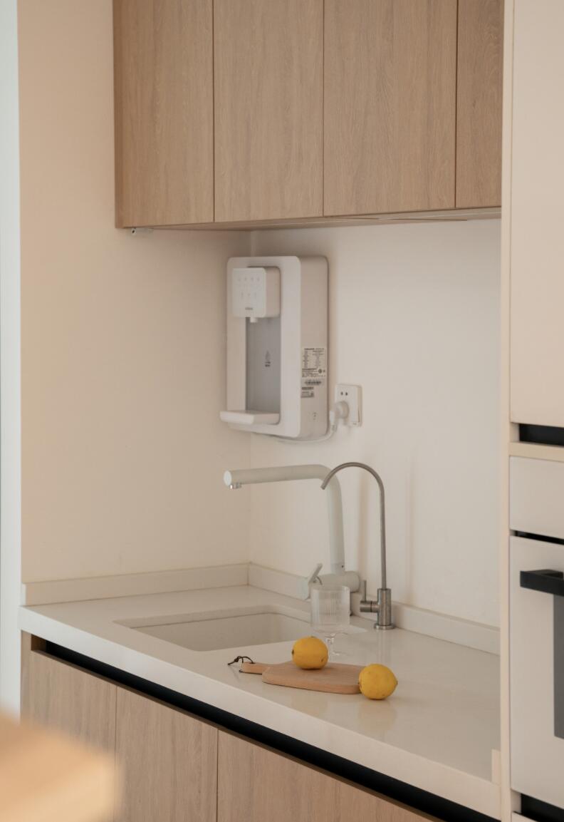 右侧设计了一套功能柜,满足简单的烹饪和烘焙制作。当然,在厨房面积有限的情况下,西厨也巧妙地缓解了空间压力。