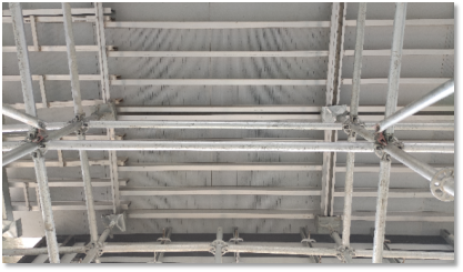 高大模板支撑体系采用盘扣架+铝合金格栅+塑料模板体系,相较于传统模板架体,用钢量节约40%以上,铝合金格栅周转使用次数可达30次以上,远远大于普通模板体系钢管木方4-6次周转,符合国家“绿色环保,节约资源” 的可持续发展理念。