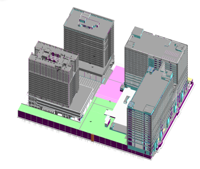 该项目基于EPC总承包的管理理念,运用BIM信息化技术对项目的设计、生产、施工及运维进行统筹管理,BIM设计阶段应用分为设计建模、碰撞检查、工程量统计、预制构件深化设计、性能化设计、专有族库建立等;构件生产阶段主要应用点分为预制构件深化加工、预制构件分类提取工程量等;施工安装工作阶段主要应用点为模型深化、场地布置及设备管理、施工组织模拟、预制构件吊装模拟、专项工艺模拟、施工图纸变更管理、分阶段施工算量统计等。