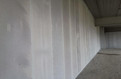标准层内墙采用蒸压轻质混凝土板(ALC条板),根据层高变化选用合适长度的ALC条板,不需抹灰,可直接在砌体上刮腻子,进行装饰面层施工,具有施工速度快、砌体平整度好、节约空间等优势,且在施工时无湿作业,环保性能好。