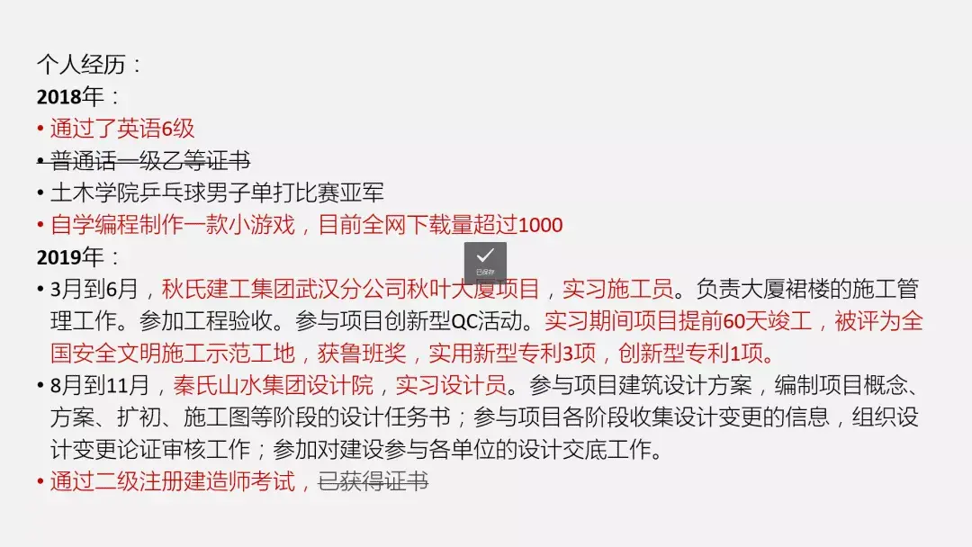经历不能简单罗列,更不能老太太裹脚布,写得又臭又长。