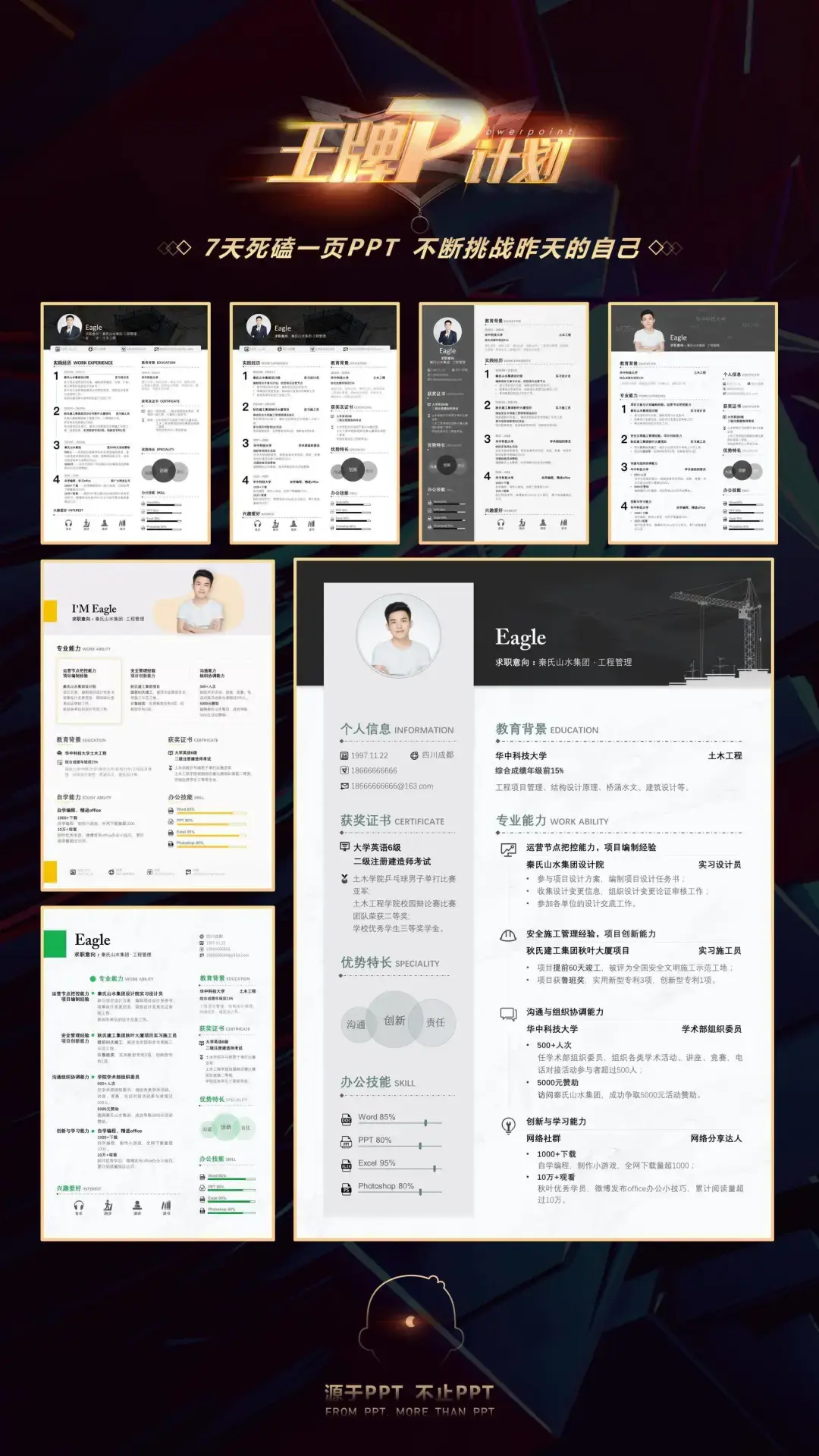每个人的信息和经历并不一致,生硬地套用,并不能取得理想的效果,尤其是针对不同的公司和岗位,需要设计的文案内容和简历结构并不一致。