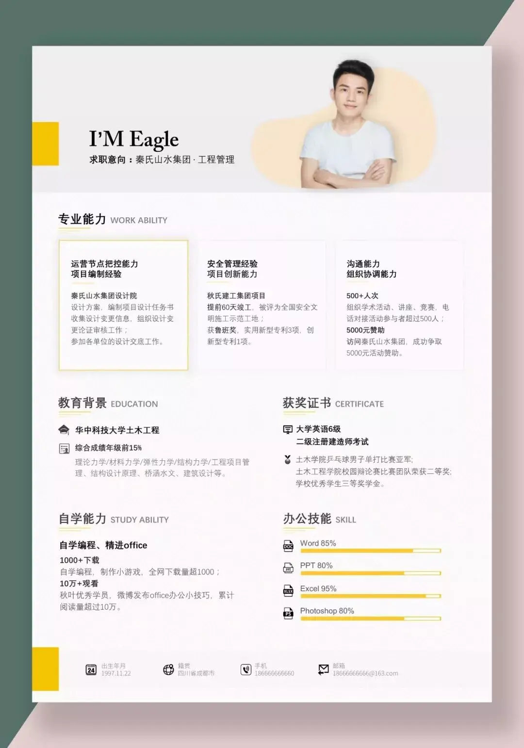 一份清爽精致的简历,让所有经验值一目了然,同时各个技能又极度符合公司要求,是不是感觉公司的大门已经向你敞开了呢?