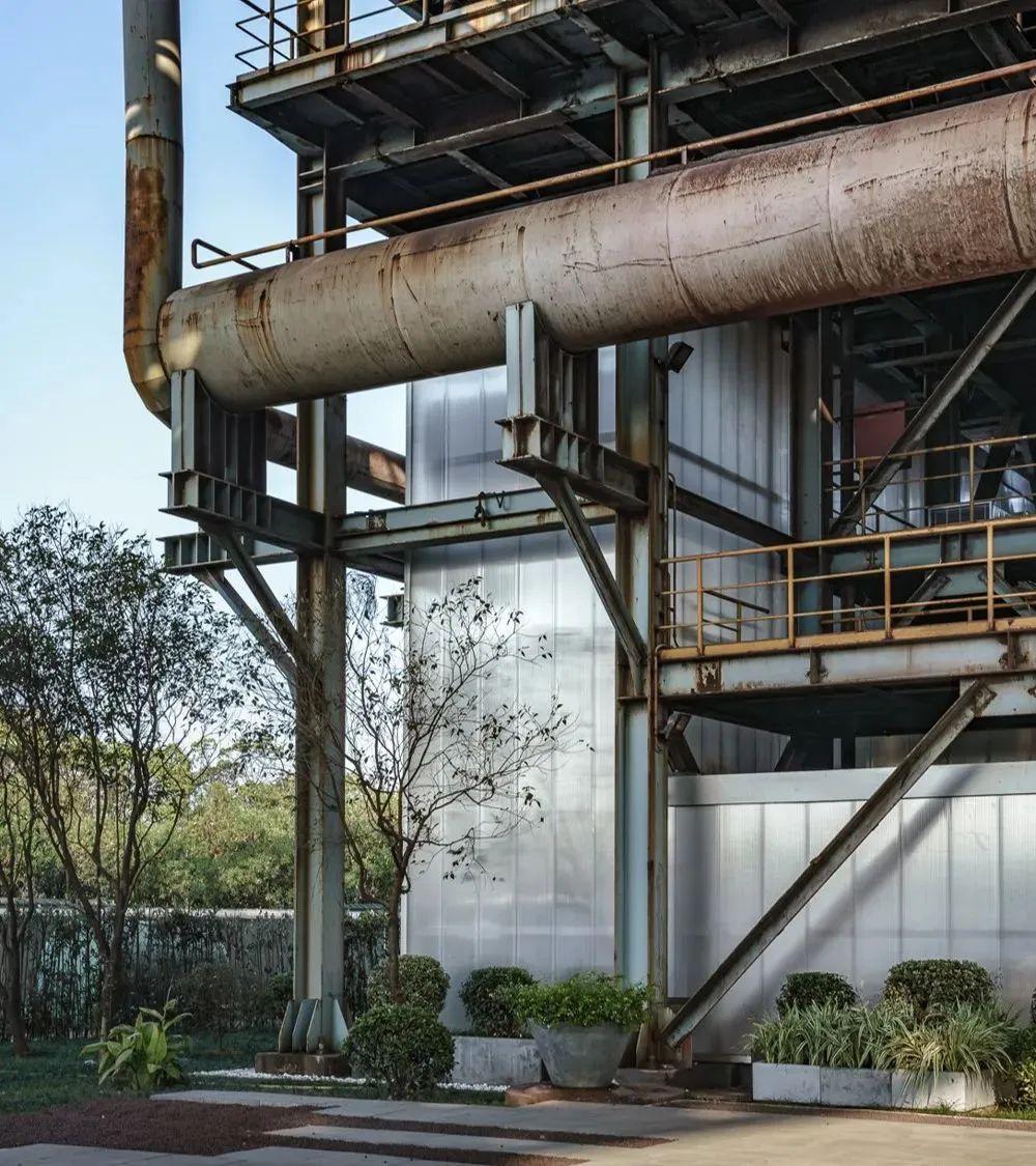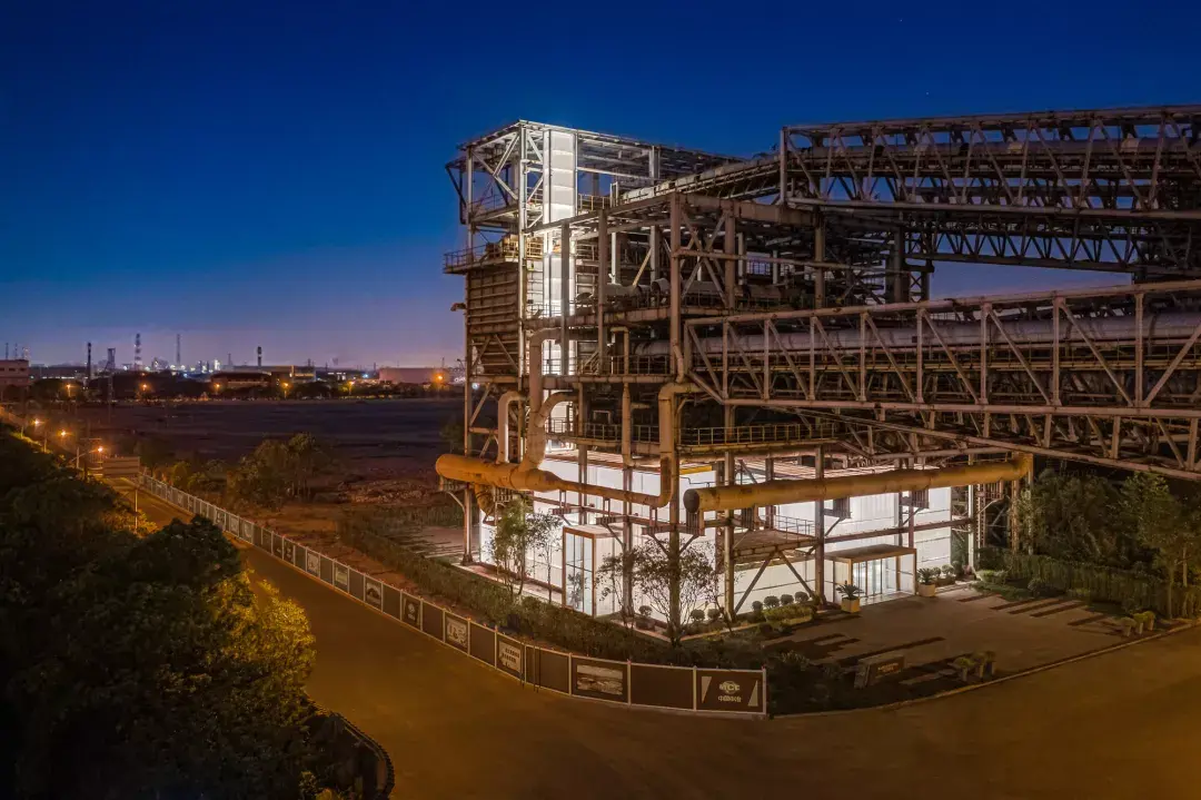 在上海宝山,遗留着一座宝武上海罗泾基地的工业遗产,经过 Kokaistudios 灵活而大胆的改造设计,原本不具功能性的破旧结构转变为极具工业风格的展览中心——宝山再生能源利用中心概念展示馆。