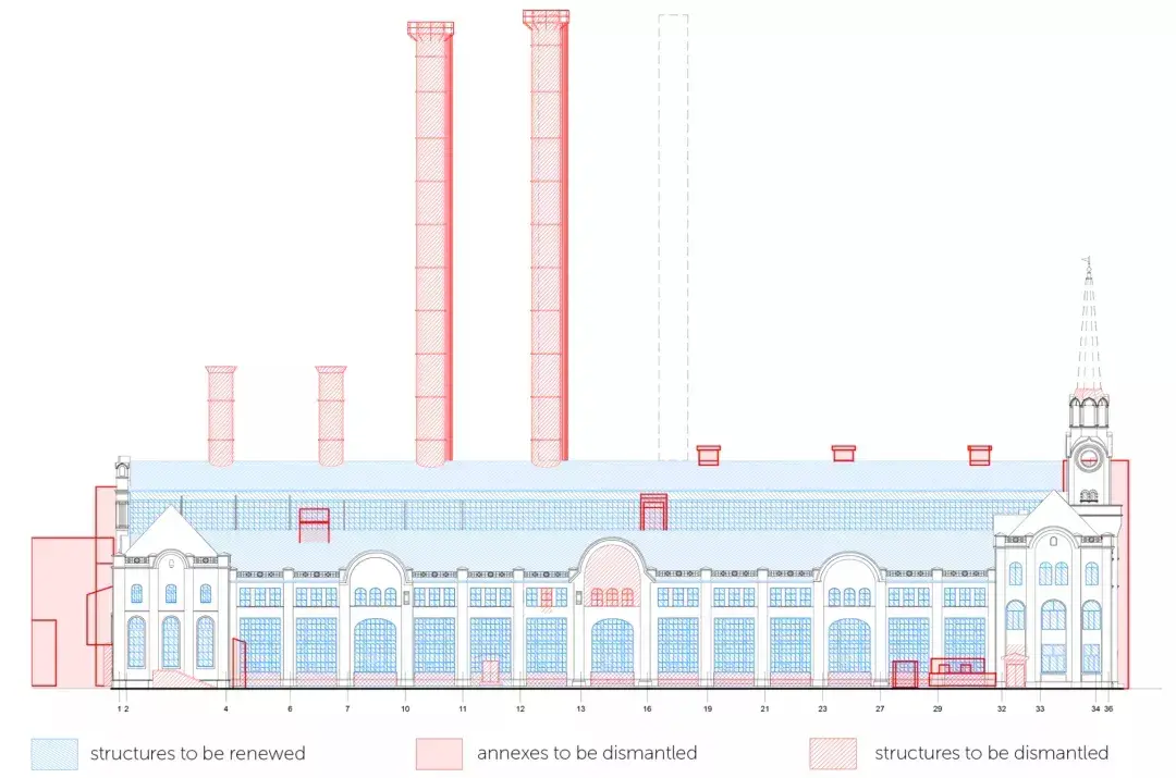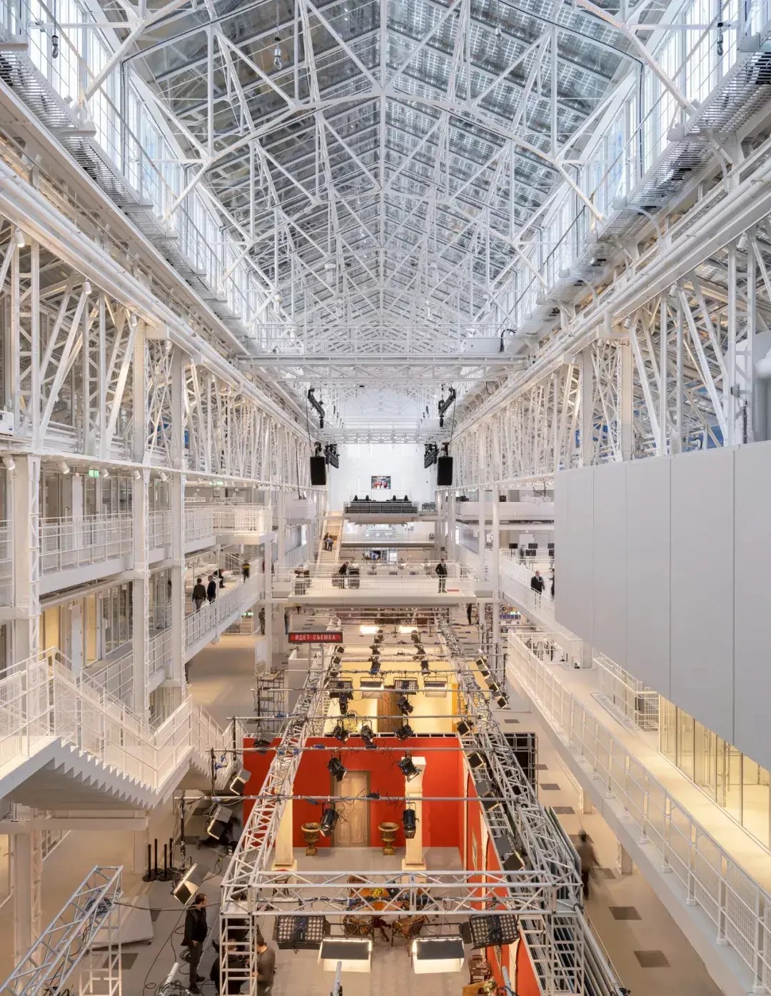 保留原始的通风工业美学,在各个方面进行现代化改造,打造一个可容纳所有艺术形式的场所。并为了整体空间的采光,将原发电厂的屋顶用玻璃代替,营造出一种光之教堂的感觉。