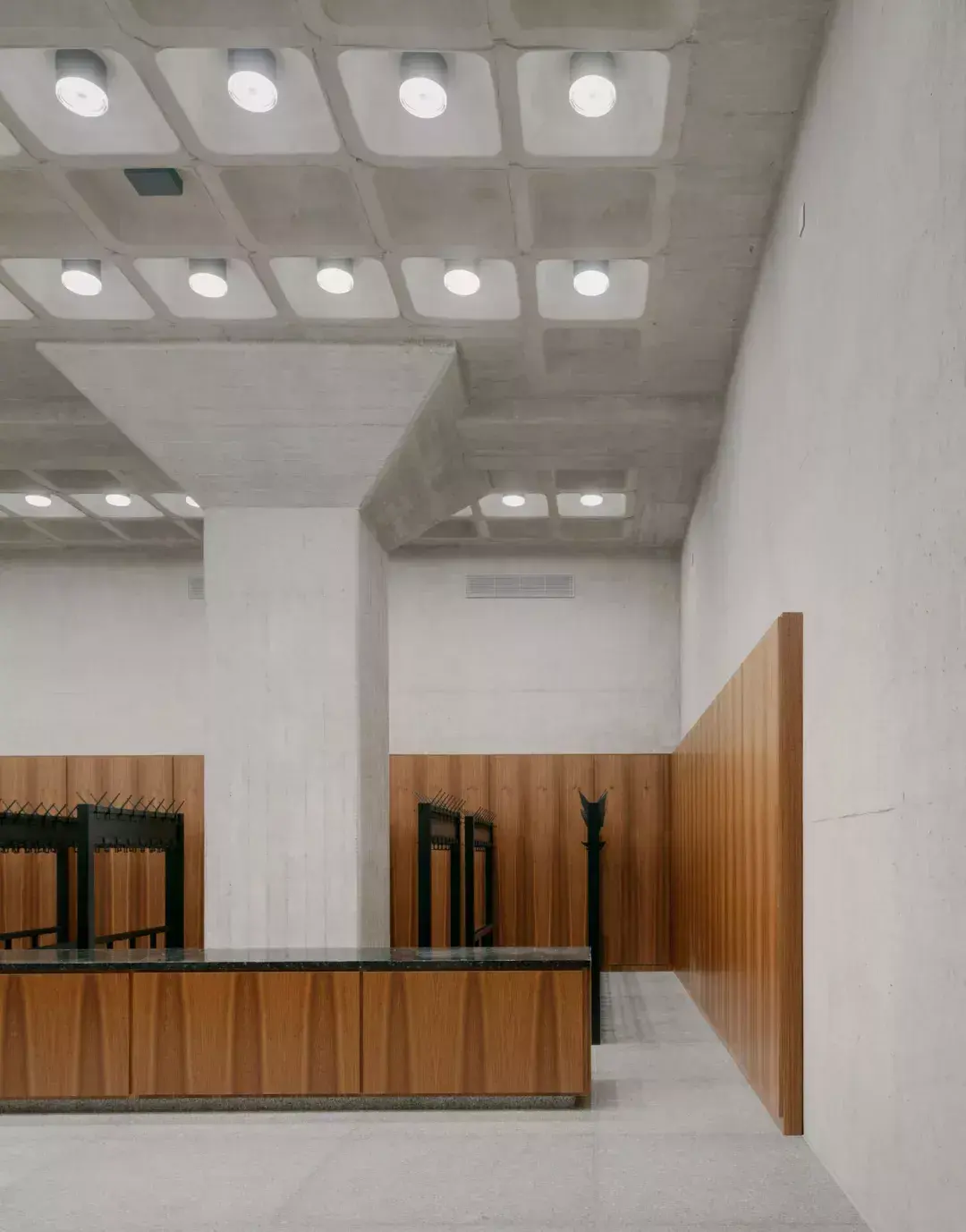 建筑的主入口用红砖重新设计。一方面,用旧材料表现历史的温暖;另一方面,尝试了各种新的瓷砖技术来表达当代设计理念,室内设计则探索了钢铁的坚固性与时尚的精致之间的对话。