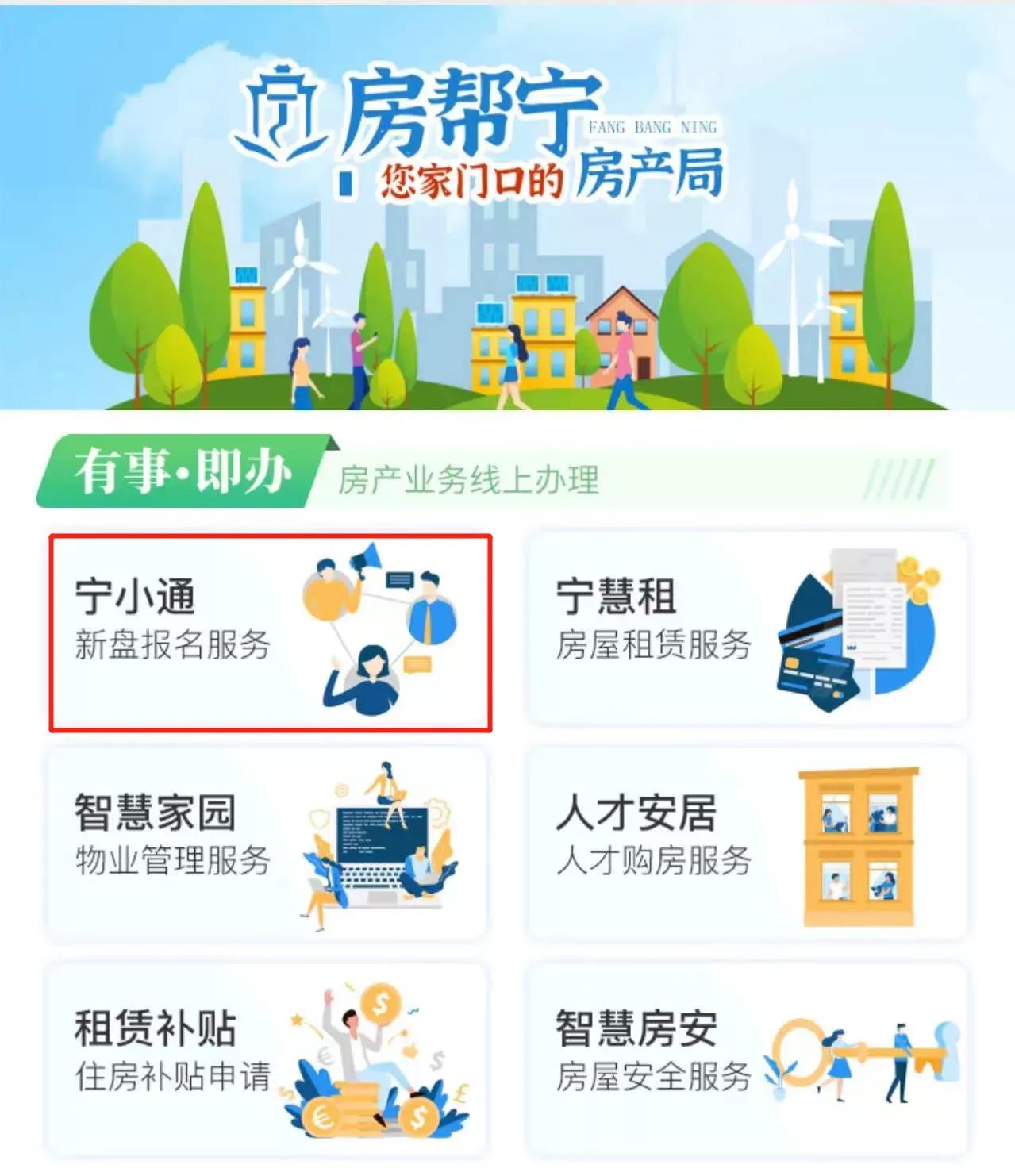 自2021年7月19日起,全市所有新建商品住房项目须通过“宁小通”在线平台报名。