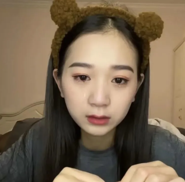 张曼如画着全套的妆容,对着镜头哭得梨花带雨。