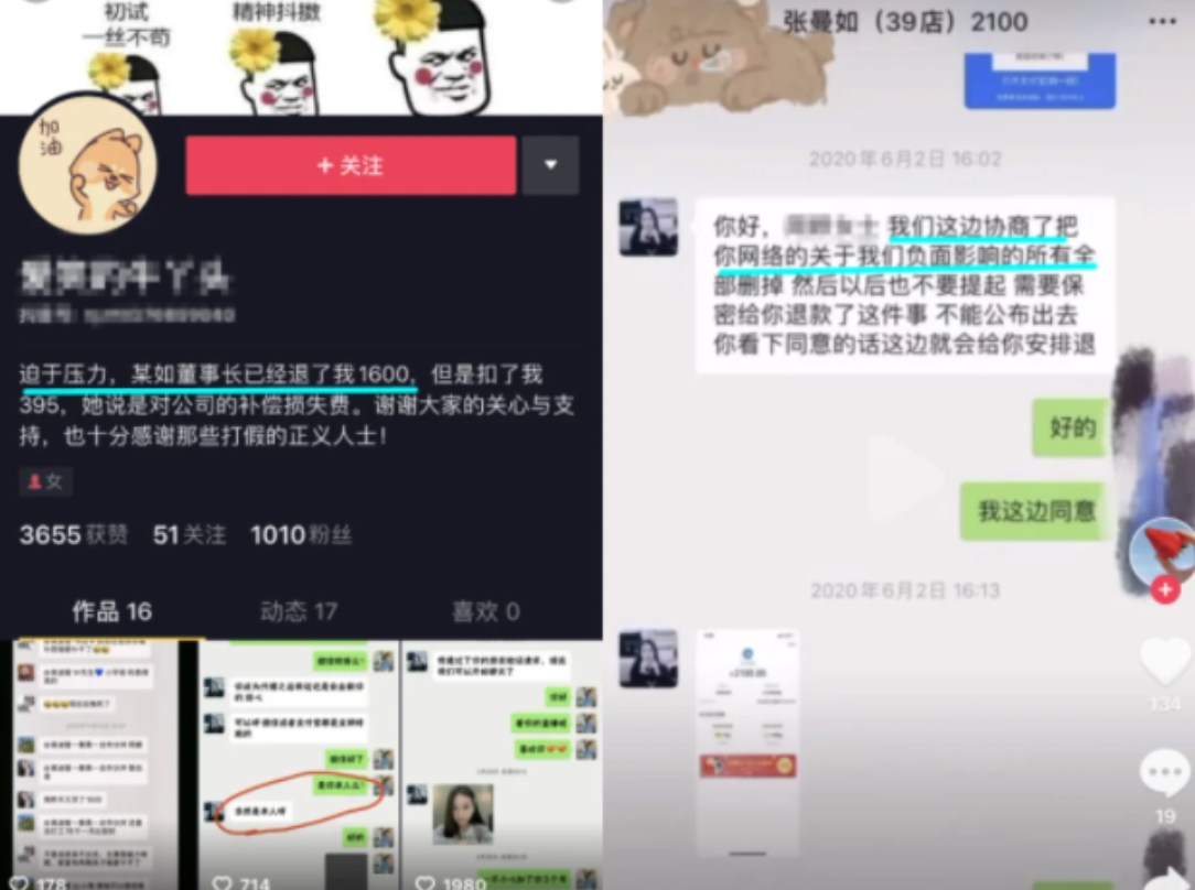 愿意协商的都收到了小部分退款,不愿意协商的则被张曼如的团队举报到封号。