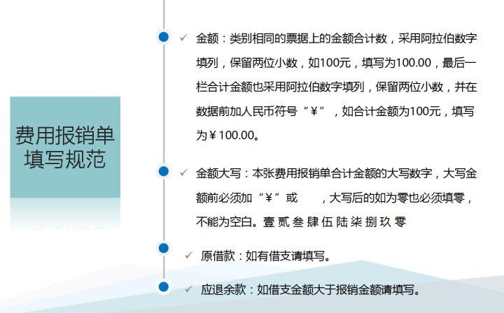 除出差费用外的所有费用都填写《费用报销单》;填写金额的时候要保留2位小数,还要加上¥符号