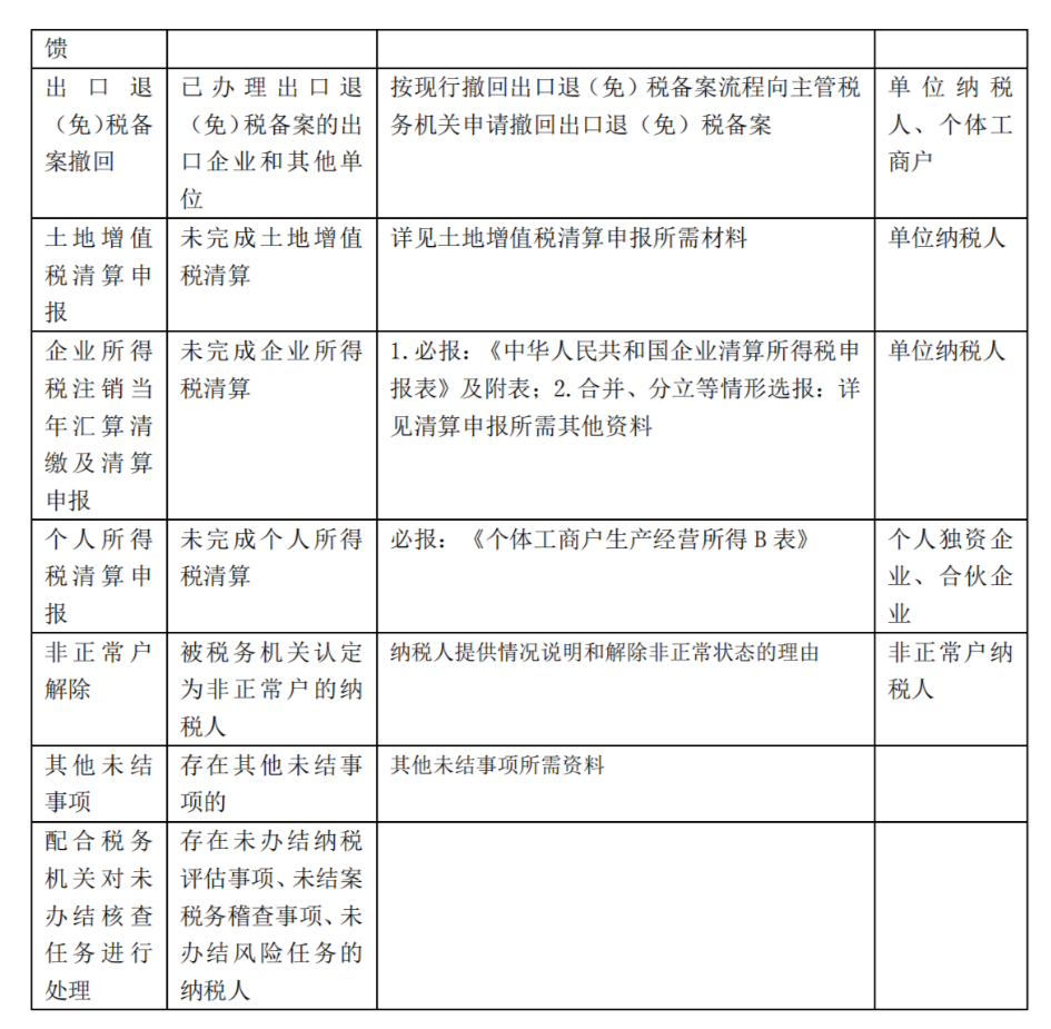 2.存在未办结纳税评估事项、未结案税务稽查事项、未办结风险任务的纳税人不能办理税务清税注销。