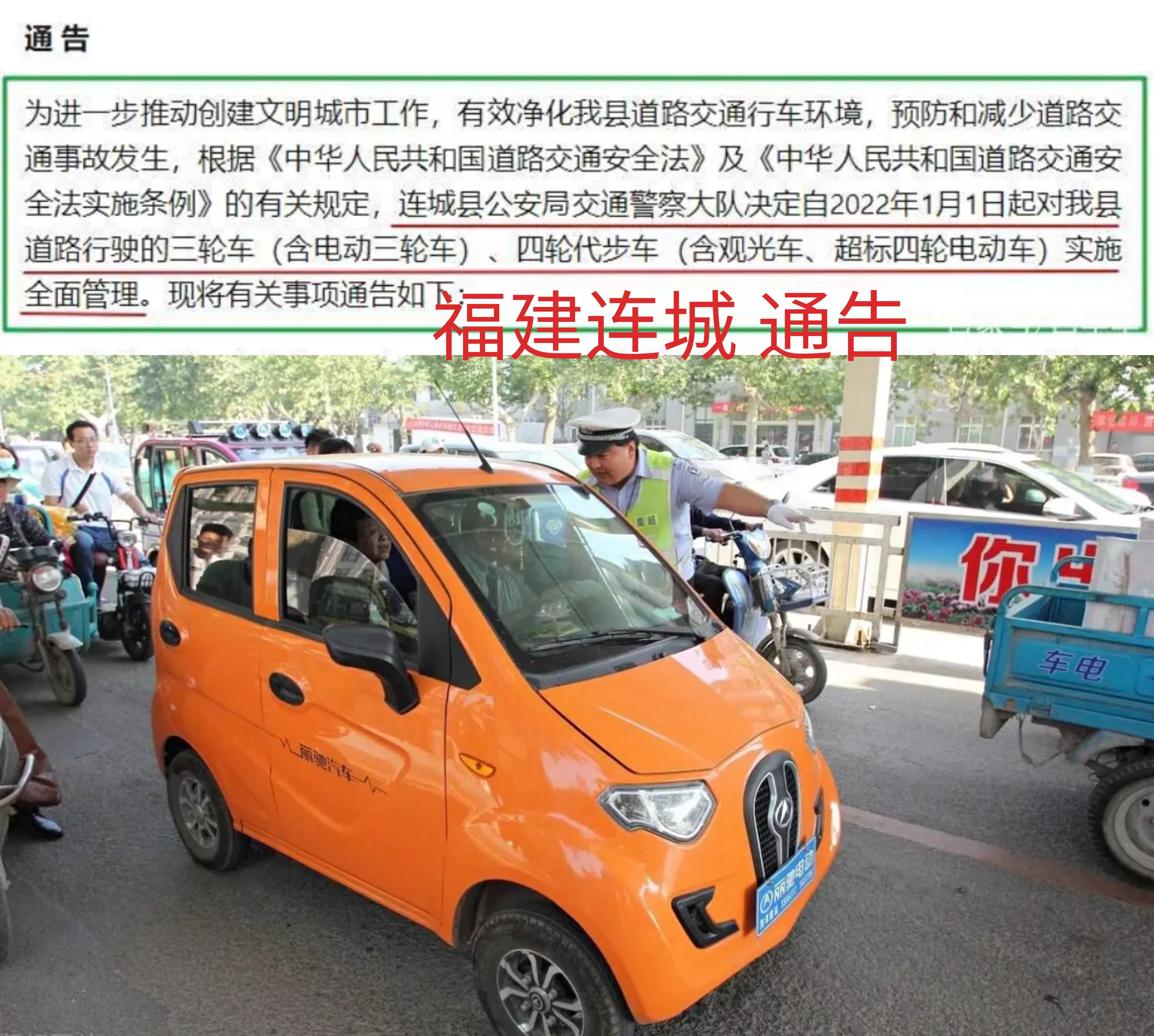福建连城:1月1日起,对电动三轮、四轮代步车进行全面的管理