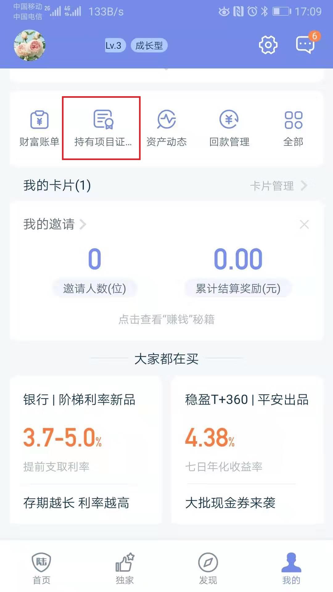 凡是在陆金所中有相关的资产存在,也是可以开具资产证明文件的!打开APP,点开【我的】,下拉界面至【持有项目证明】,绑定并认证个人邮箱后,即可开具!不过,陆金所的资产证明将以PDF的格式发至个人邮箱,切记要确保个人邮箱的真实有效性!