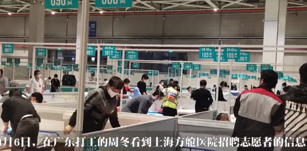 在经过几天的培训工作后,在4月12日,周冬和其他一千多名志愿者来到了上海方舱医院开始工作。